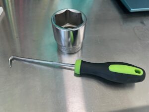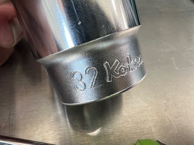ピックと差し込み角「1/2」サイズのソケットを使います(ここでは32mm)。